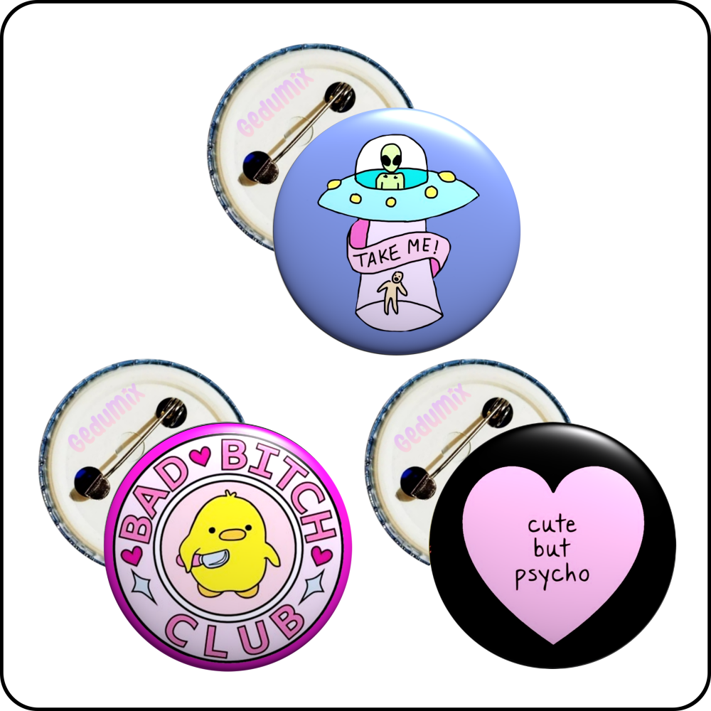 Apresentamos o Botton GEDUMIX Baddie Aesthetic 1.0, um conjunto de três broches que combina estilo e sustentabilidade. Com diâmetros de 3,5 cm e 5,5 cm, esses bottons redondos são perfeitos para expressar sua personalidade e adicionar um toque único a qualquer look. Feitos de materiais reciclados, como PVC e alumínio, eles não apenas embelezam, mas também respeitam o meio ambiente.